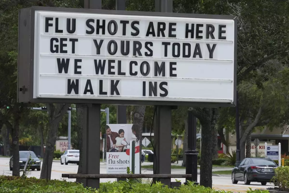 A sign at a Walgreens pharmacy offering flu shots is seen, Thursday, Sept. 4, 2025, in Miami Shores, Fla. (AP Photo/Marta Lavandier)