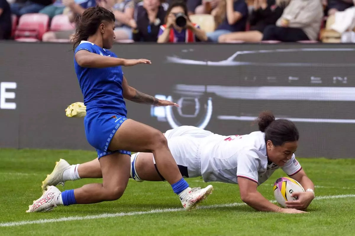 Samoa, playing its first World Cup in 11 years, was spirited and fought to the end. It enjoyed a purple patch while U.S. replacement wing Kristen Bitter was in the sin-bin but the Eagles were just as determined not to concede. Flanker Georgie Perris-Redding stripped Samoa in a tackle between her own posts, and Zackary made a try-saving tackle on Samoa's Taytana Pati Ah-Cheung.