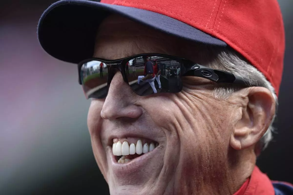 FILE - Washington National manager Davey Johnson laughs before a baseball game against the Miami Marlins at Nationals Park in Washington, Sunday, Sept. 22, 2013. (AP Photo/Susan Walsh, File)