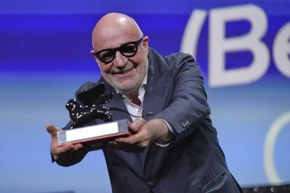 Director Gianfranco Rossi accepts the special jury prize for 'Below the Clouds' during the awards ceremony of the 82nd edition of the Venice Film Festival in Venice, Italy, on Saturday, Sept. 6, 2025. (Photo by Alessandra Tarantino/Invision/AP)