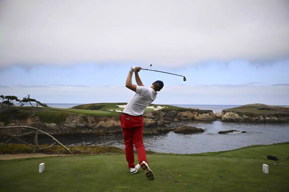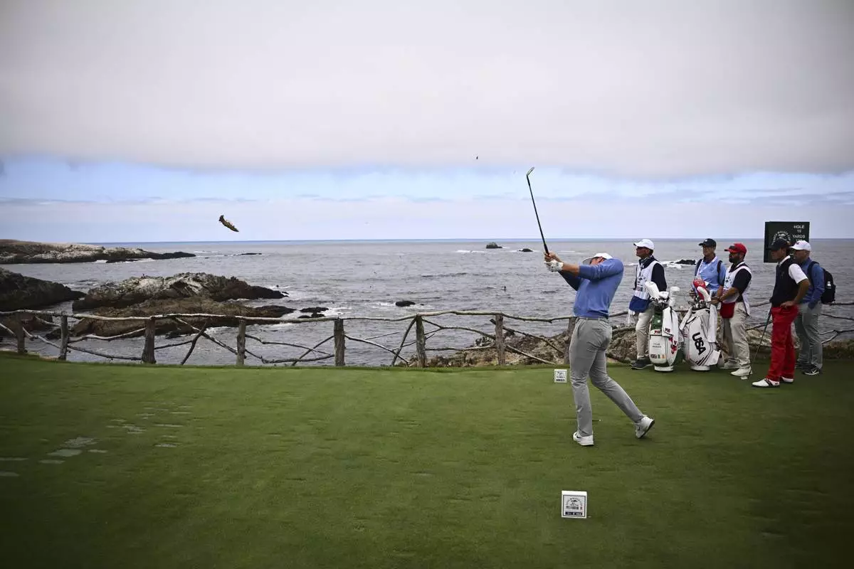 The USA team's Tommy Morrison hits from the 16th tee during Walker Cup golf matches against the Great Britain and Ireland team at Cypress Point Club on Saturday, Sept. 6, 2025, in Pebble Beach, Calif. (AP Photo/Thien-An Truong)