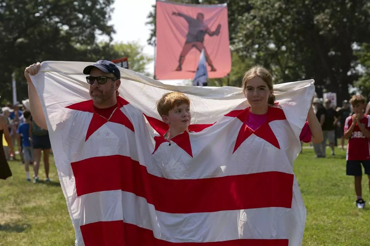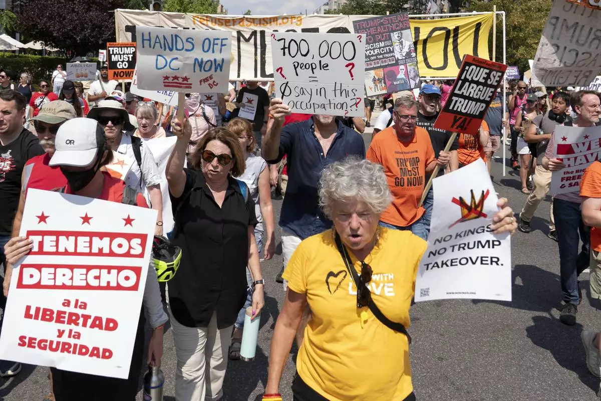 WASHINGTON (AP) — Thousands of protesters marched across Washington, D.C., on Saturday in one of the largest demonstrations against President Donald Trump's federal takeover of policing in the nation’s capital.