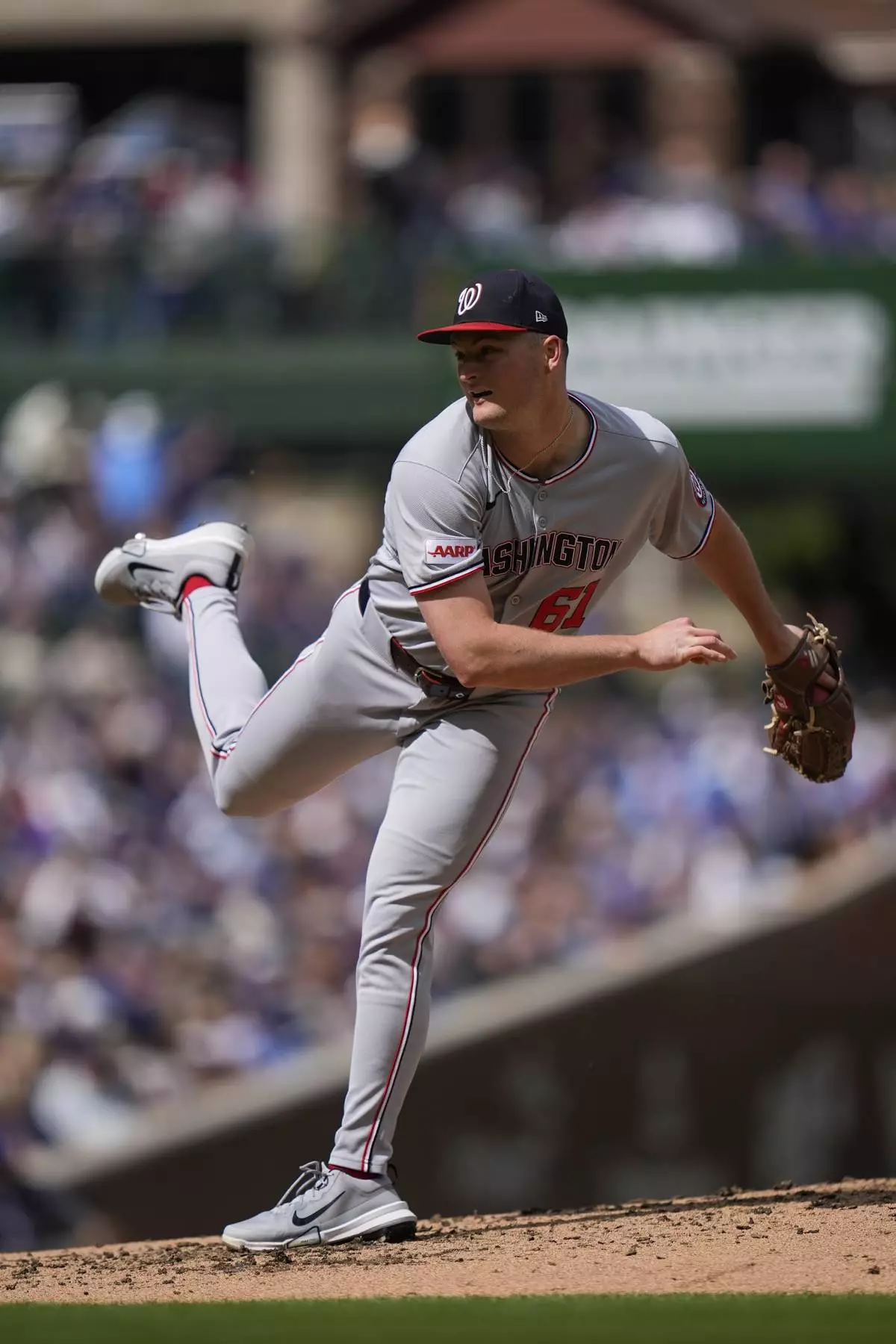 Washington Nationals starting pitcher Brad Lord (61) throws against the Chicago Cubs during the fourth inning of a baseball game Saturday, Sept. 6, 2025, in Chicago. (AP Photo/Erin Hooley)