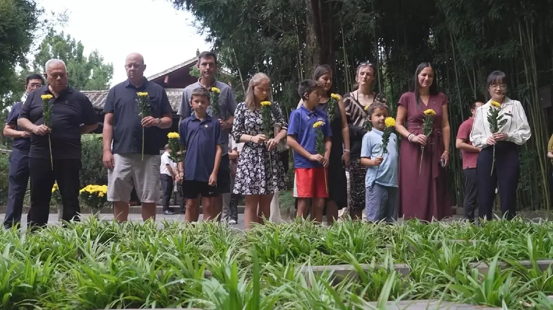 The Stilwell family began their visit at the National Martyrs Cemetery in Tengchong, a city near the Myanmar border. There, they laid flowers at General Stilwell’s statue and at the memorial for fallen Allied and Chinese Expeditionary Force soldiers, commemorating those who fought side by side more than 80 years ago.