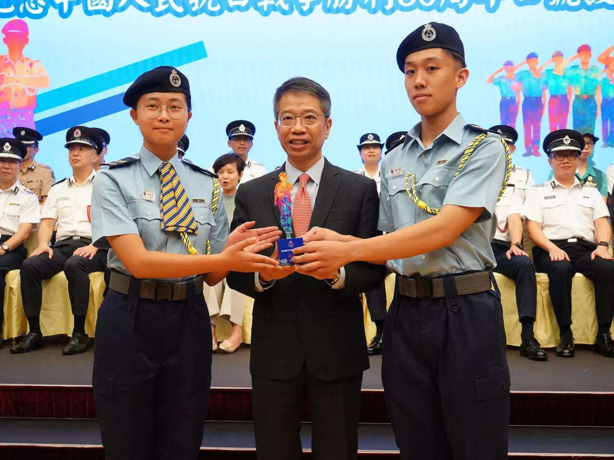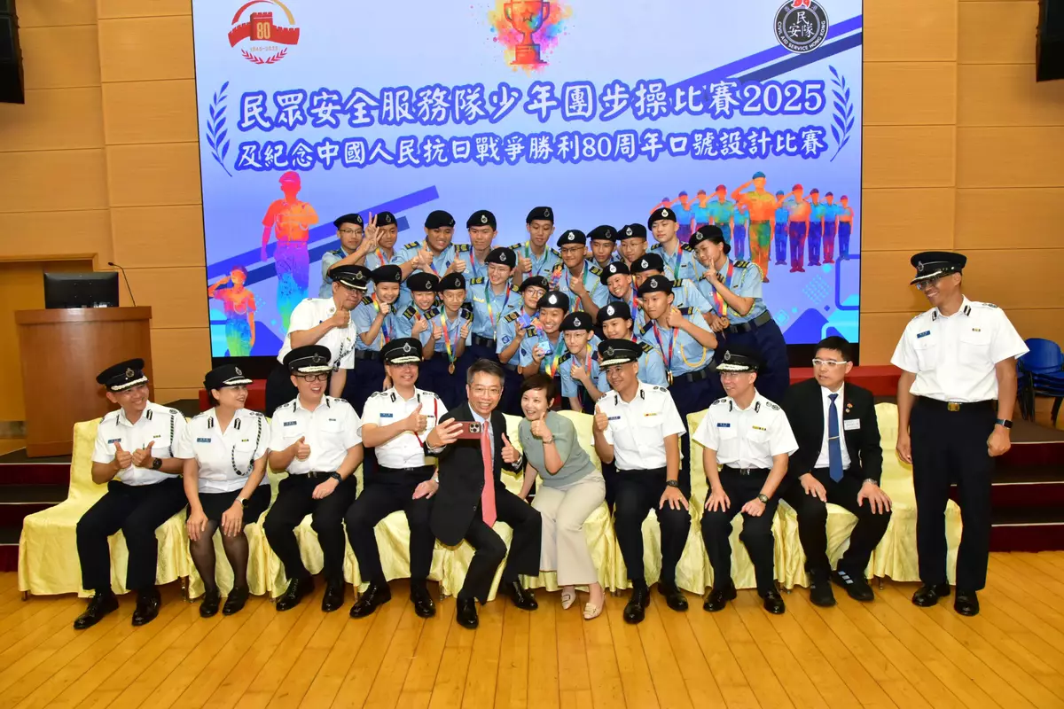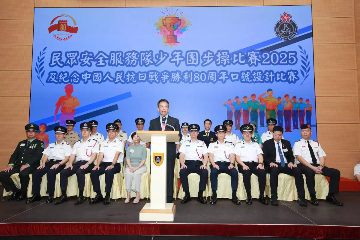 The Civil Aid Service (CAS) Cadet Corps held the Foot Drill Competition 2025 and the Slogan Design Competition in Commemoration of the 80th Anniversary of Victory in the Chinese People's War of Resistance Against Japanese Aggression today (September 7) at the CAS Headquarters. The competitions and award presentation ceremony were officiated by the Permanent Secretary for the Civil Service, Mr Clement Leung.
