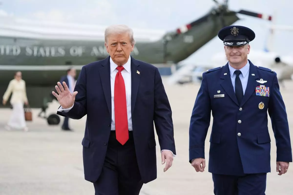 President Donald Trump arrives at Joint Base Andrews, Md., to board Air Force One, Sunday, Sept. 7, 2025. (AP Photo/Manuel Balce Ceneta)