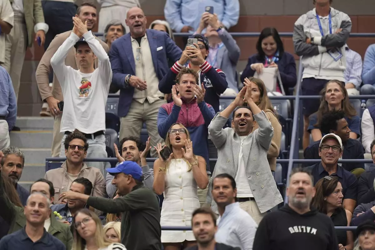 Fans react to President Donald Trump during the men's singles final of the U.S. Open tennis championships, Sunday, Sept. 7, 2025, in New York. (AP Photo/Seth Wenig)