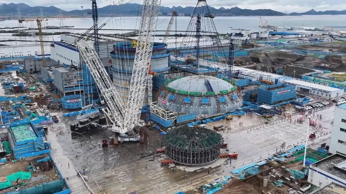 The steel dome for the nuclear island of Unit 4 of the Haiyang Nuclear Power Plant in Haiyang City, east China's Shandong Province was successfully lifted into place on Saturday, signifying that half of the Phase II construction of the plant has been completed.