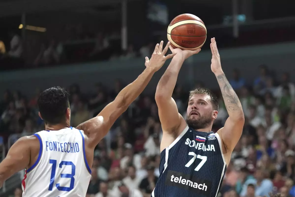 Los Angeles Lakers star Luka Dončić scored 42 points and had 10 rebounds as Slovenia held off a fourth-quarter surge from Italy to win 84-77 and set up a quarterfinal match against World Cup winner Germany.