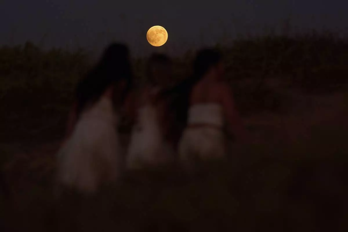 A blood moon rises ahead of a Lunar Eclipse in Hadera, Israel, Sunday, Sept. 7, 2025. (AP Photo/Ariel Schalit)