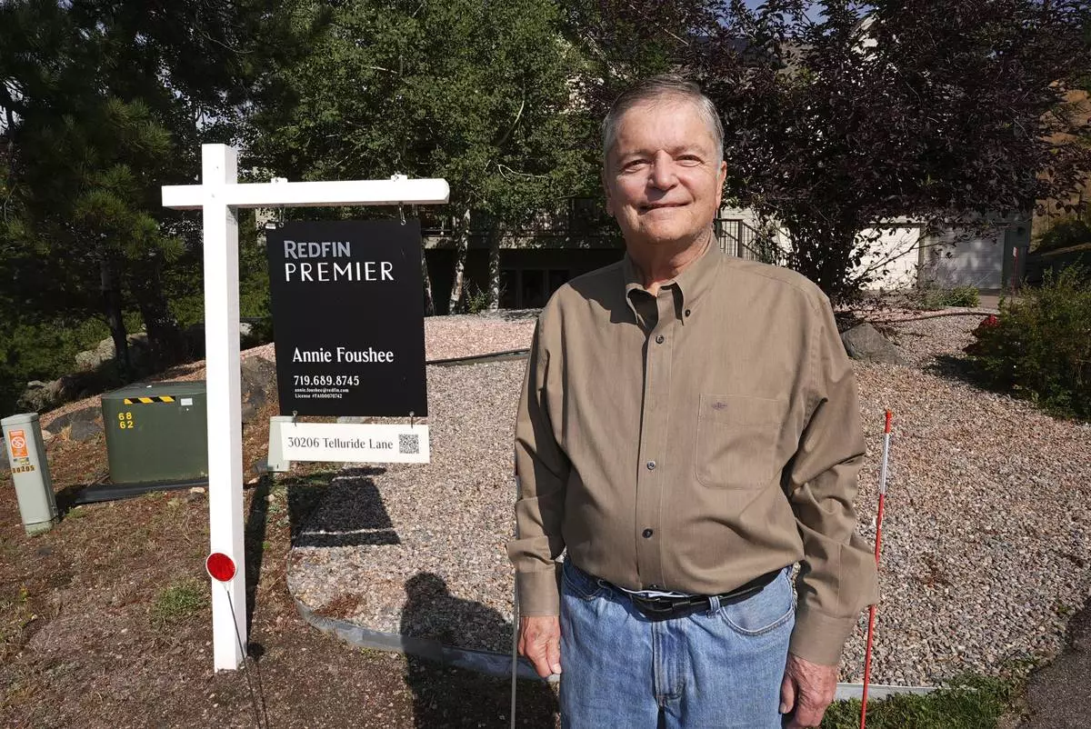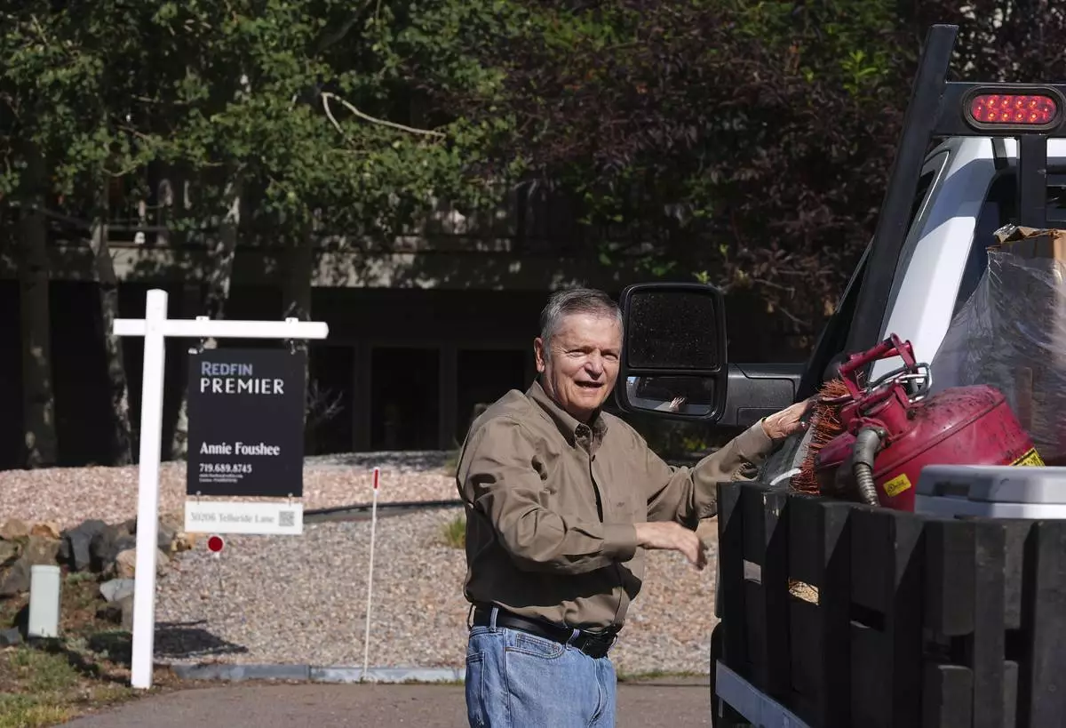 Doug McCormick is shown outside his four-bedroom home that has been up for sale for almost two months Tuesday, Aug. 26, 2025, near Evergreen, Colo. (AP Photo/David Zalubowski)
