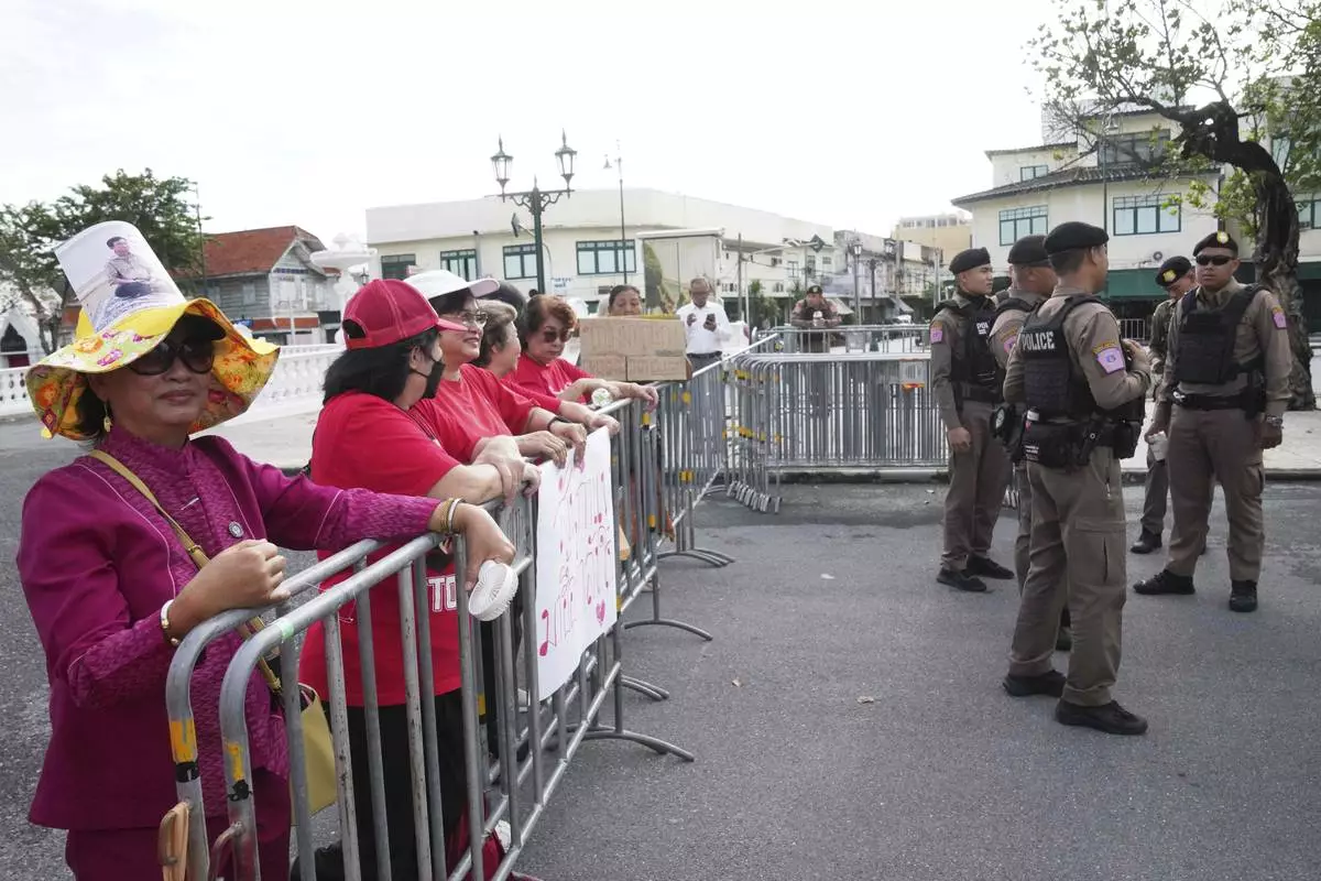 Supporters of Thailand's former Prime Minister Thaksin Shinawatra gather outside the Supreme Court in Bangkok, Thailand, Tuesday, Sept. 9, 2025, (AP Photo/Sakchai Lalit)