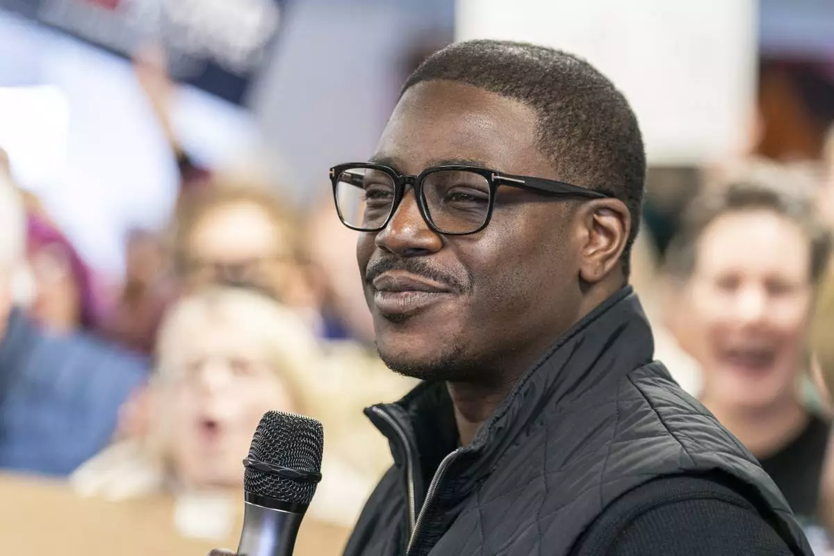 FILE - Milwaukee County Executive David Crowley addresses a crowd on a campaign stop for Wisconsin Supreme Court candidate Susan Crawford Saturday, March 29, 2025, in Milwaukee. (AP Photo/Andy Manis, file)