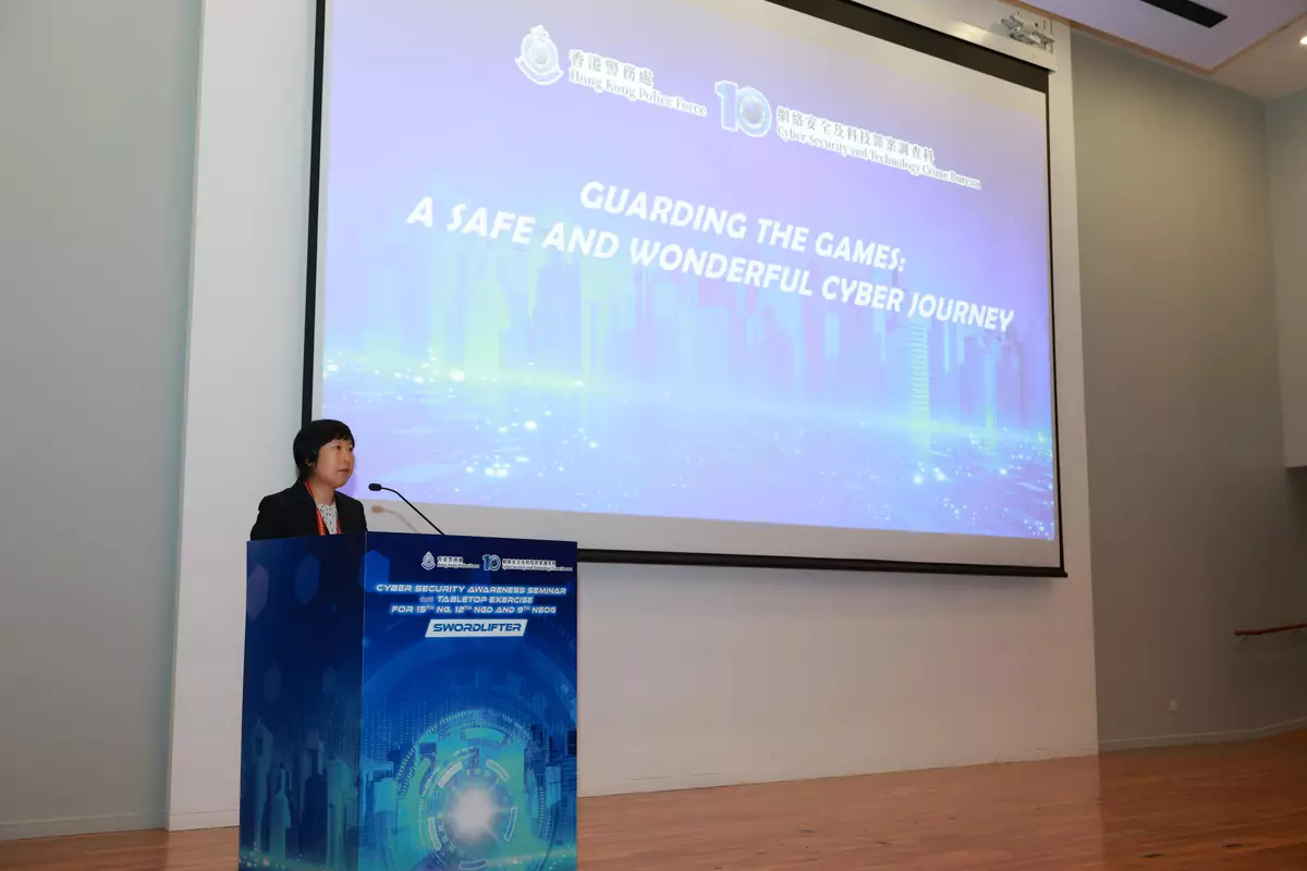 The Cyber Security and Technology Crime Bureau (CSTCB) of the Hong Kong Police Force (HKPF) conducted the Cyber Security Seminar cum Tabletop Exercise, codenamed SWORDLIFTER, at the Police Headquarters today (September 9). The event aimed to enhance cyber resilience, incident reporting co-ordination and immediate response capabilities of relevant stakeholders in preparation for the 15th National Games (NG), the 12th National Games for Persons with Disabilities (NGD) and the 9th National Special Olympic Games (NSOG).