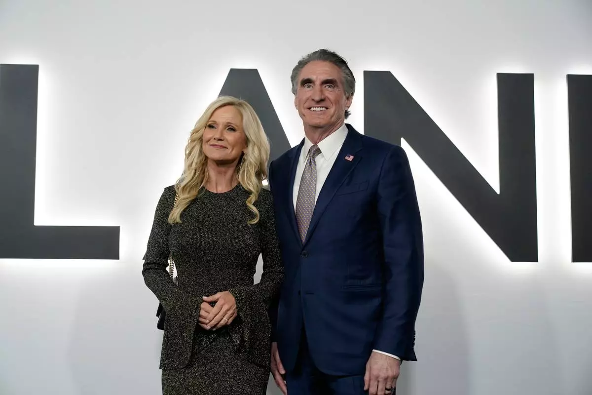 Interior Secretary Doug Burgum and his wife Kathryn arrive for the premiere of first lady Melania Trump's movie "Melania" at The John F. Kennedy Memorial Center For The Performing Arts, Thursday, Jan. 29, 2026, in Washington. (AP Photo/Jose Luis Magana)