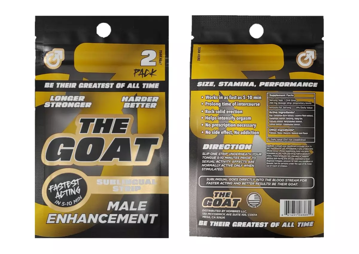Following up on a public complaint, the DH purchased samples of a product named "The Goat Sublingual Strip" (see photo) via an instant messaging application for analysis. The label of the oral pills indicated it was a natural virility product. Test results from the Government Laboratory revealed that the samples contained sildenafil, which is a Part 1 poison under the Pharmacy and Poisons Ordinance (Cap. 138) (the Ordinance). The product is alsosuspected to be an unregistered pharmaceutical product.