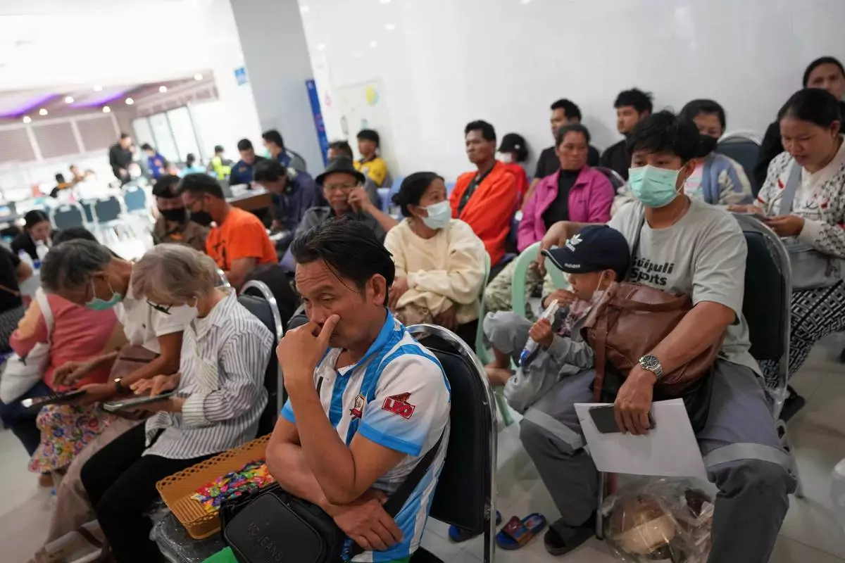 Relatives of victims and others wait at a hospital, a day after a construction crane fell into a passenger train in Nakhon Ratchasima province, Thailand, Thursday, Jan. 15, 2026. (AP Photo/Sakchai Lalit)