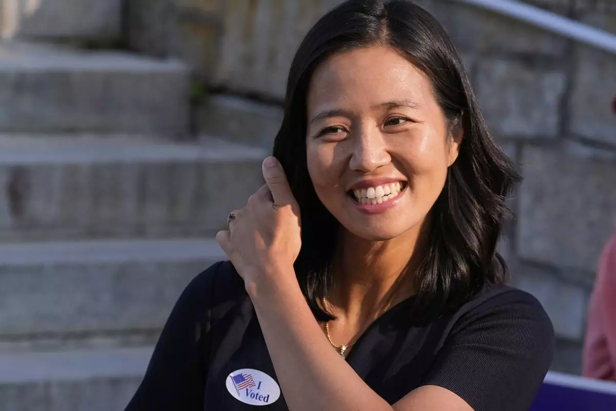 Boston Mayor Michelle Wu smiles after voting at a polling place, Tuesday, Sept. 9, 2025, in the Roslindale neighborhood of Boston. (AP Photo/Charles Krupa)