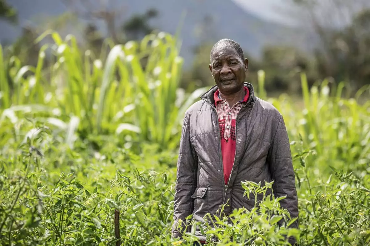 Alex Maere is seen on his farm in Mulanje, southern Malawi, Tuesday, July 29, 2025. (AP Photo/Thoko Chikondi)