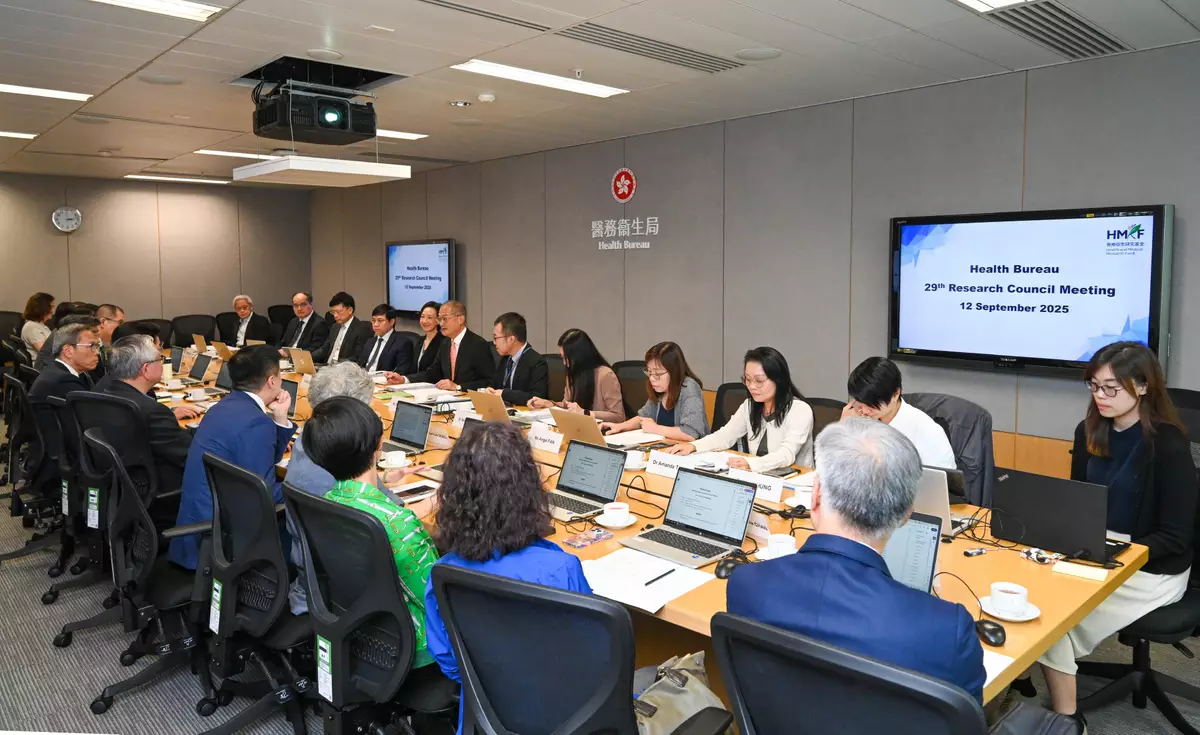 The Secretary for Health, Professor Lo Chung-mau, chaired the 29th meeting of the Research Council (RC) under the Health Bureau today (September 12) to review the research translation outcome of the Health and Medical Research Fund (HMRF), discuss the new research translation strategy of the HMRF, and consider the funding applications for investigator-initiated research projects received during the period from last December to March this year.
