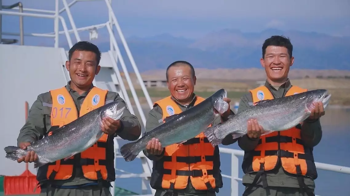 "The water sources in this reservoir originate from melting snow on the Tianshan Mountains by way of the 113 gullies upstream in Nilka County. The water temperature here consistently ranges between 8 to 12 degrees Celsius, which is the ideal environment for salmon to thrive," said Ayhen Baghdaulet, a former local herder and now a fisherman.