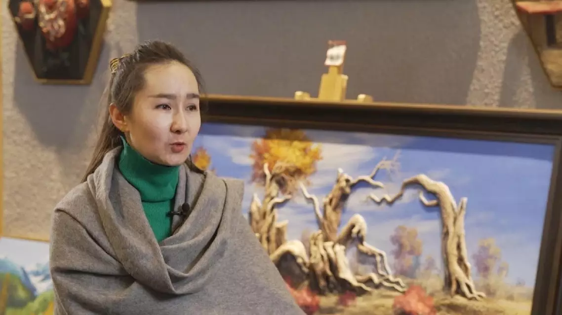 "Color Stone Painting is a form of planar relief artwork created using naturally occurring mineral powders, jade powders, and composite materials from Xinjiang. Due to family circumstances, I had to resign from my job and return from Urumqi to Yining. Aside from caring for my family, I was unable to work outside the home. In my spare time, I enjoyed painting, experimenting, and creating at home. I never received formal training in fine arts -- it was more of a hobby. From this hobby, we have now developed color stone painting into what it is today," she explained.