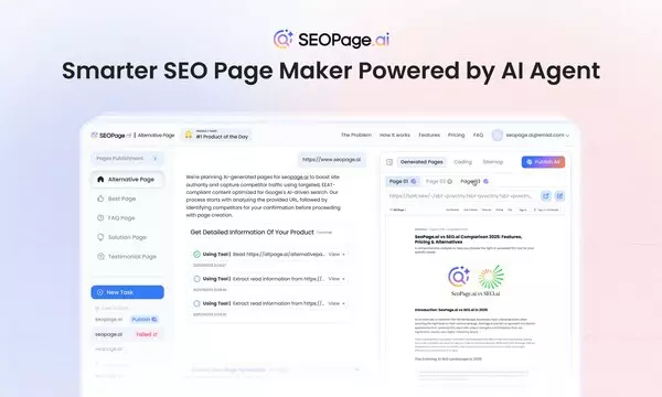 Founded in 2025 by seasoned SEO experts and digital marketers, SEOPage.ai builds on the success of its predecessor, AltPage.ai—named Product Hunt's Product of the Day on May 25, 2025—to deliver a fully autonomous AI Agent experience. This release marks a leap forward, with an intelligent system that audits competitors, drafts dynamic sitemaps, and generates pages while users focus on strategy. By monitoring SERP changes, price updates, and feature shifts in real-time, the AI Agent ensures content stays evergreen, auto-refreshing only what's needed to maintain a competitive edge.