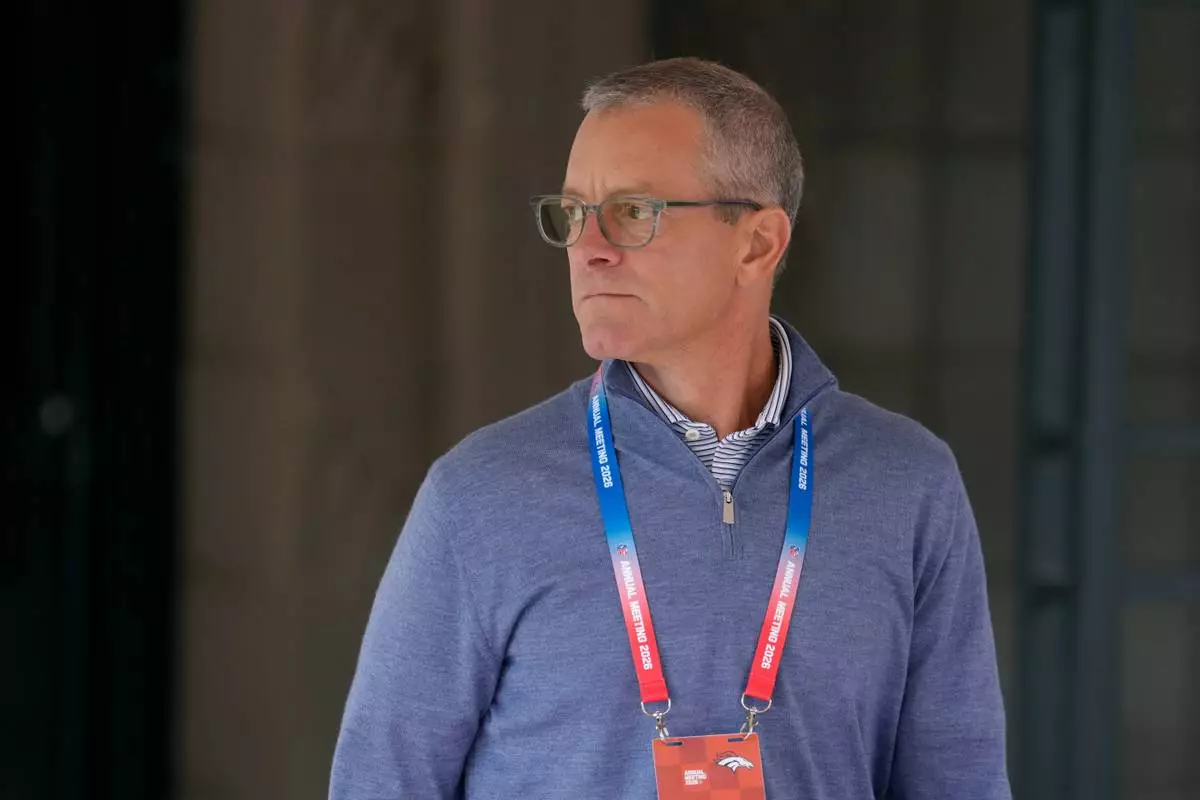 Denver Broncos owner Greg Penner walks after attending a session at the NFL football annual meetings, Tuesday, March 31, 2026, in Phoenix. (AP Photo/Ross D. Franklin)