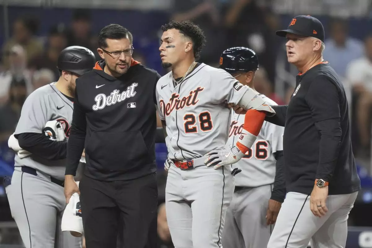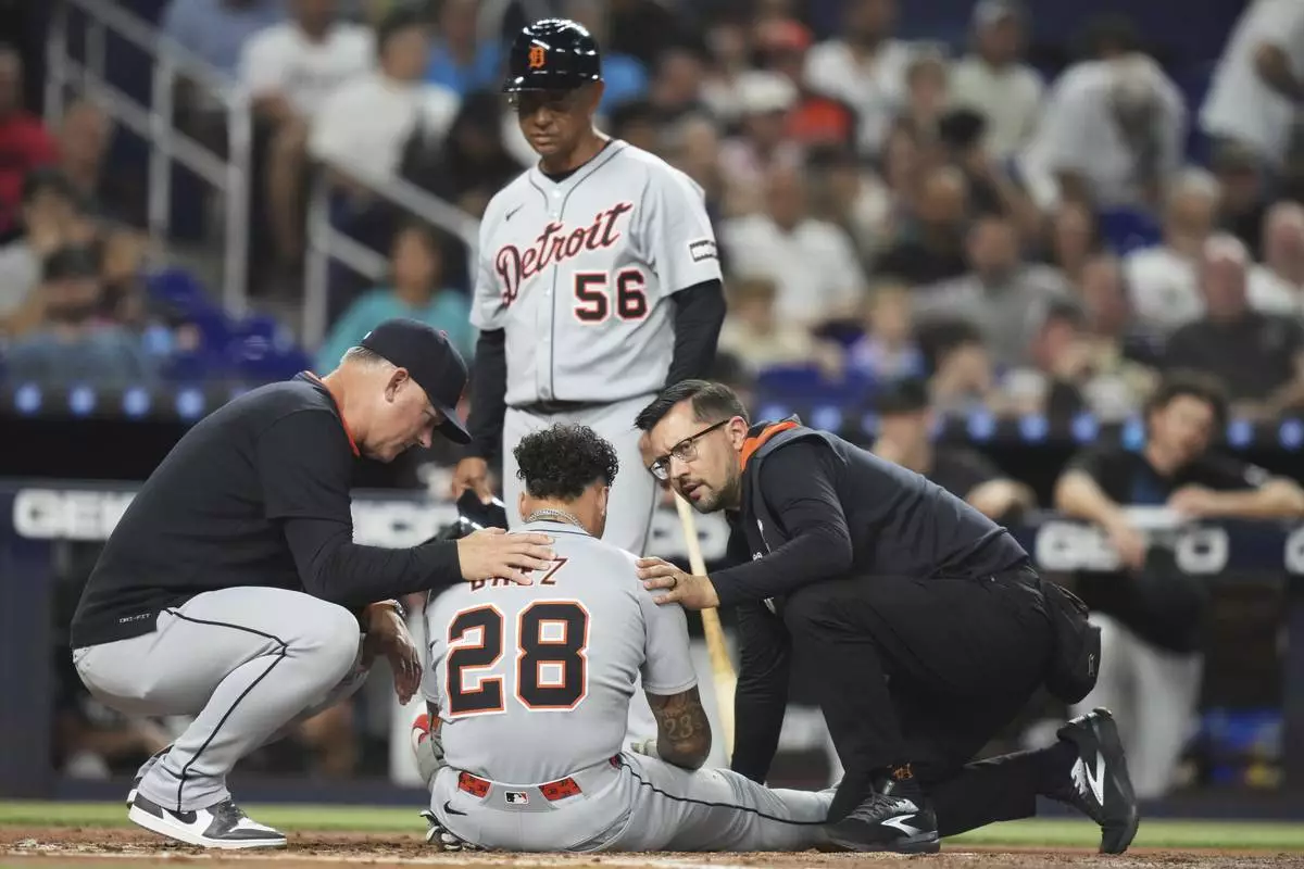 MIAMI (AP) — Detroit Tigers shortstop Javier Báez left Friday night's game against the Miami Marlins in the second inning after he fouled off a pitch that struck near his left eye.