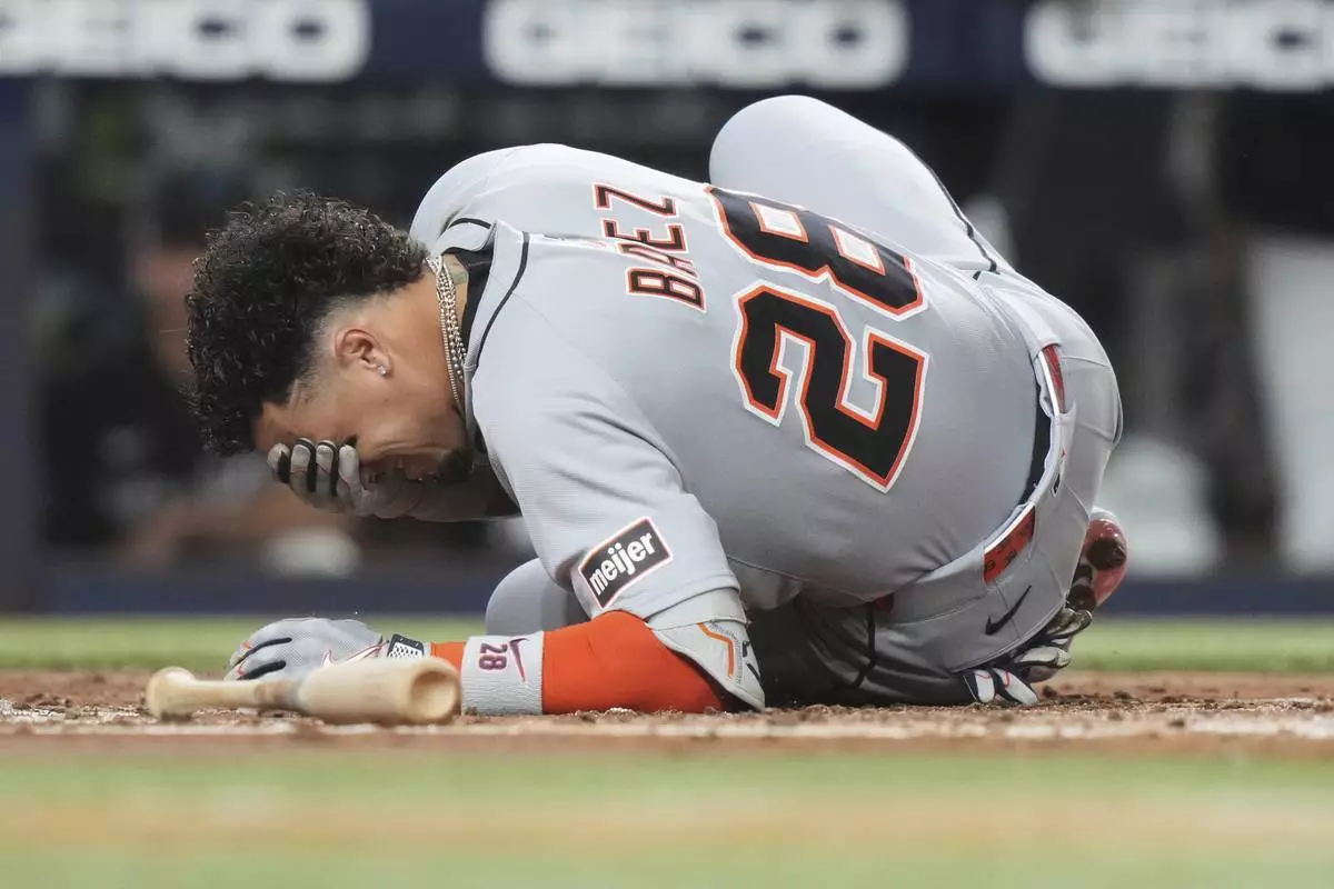 Báez remained on the ground near home plate and was tended to by the Tigers training staff. He quickly reached his feet and left the game. Trey Sweeney completed the at-bat with a strikeout that was credited to Báez.