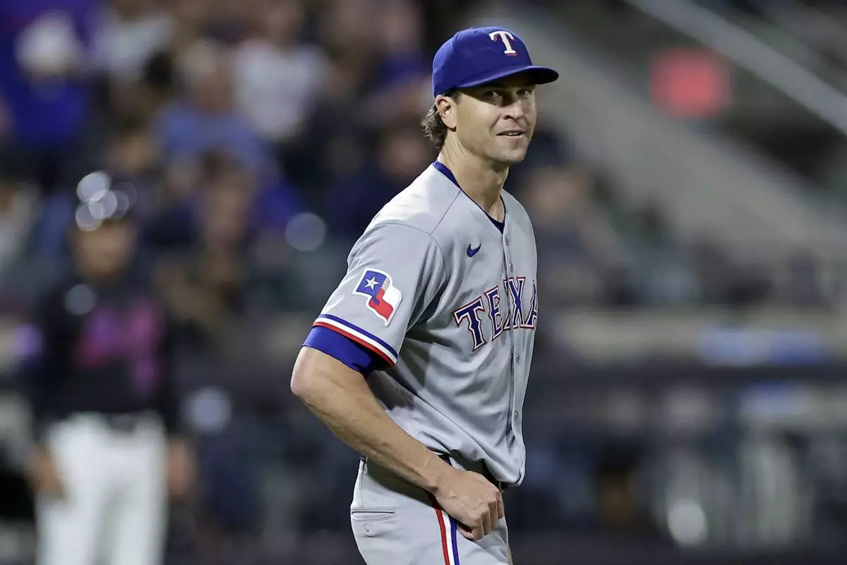 “I looked at it for a second, then I had to kind of look down, gather myself and continue playing catch to get ready for the game,” he said after pitching the soaring Texas Rangers over the skidding New York Mets 8-3.