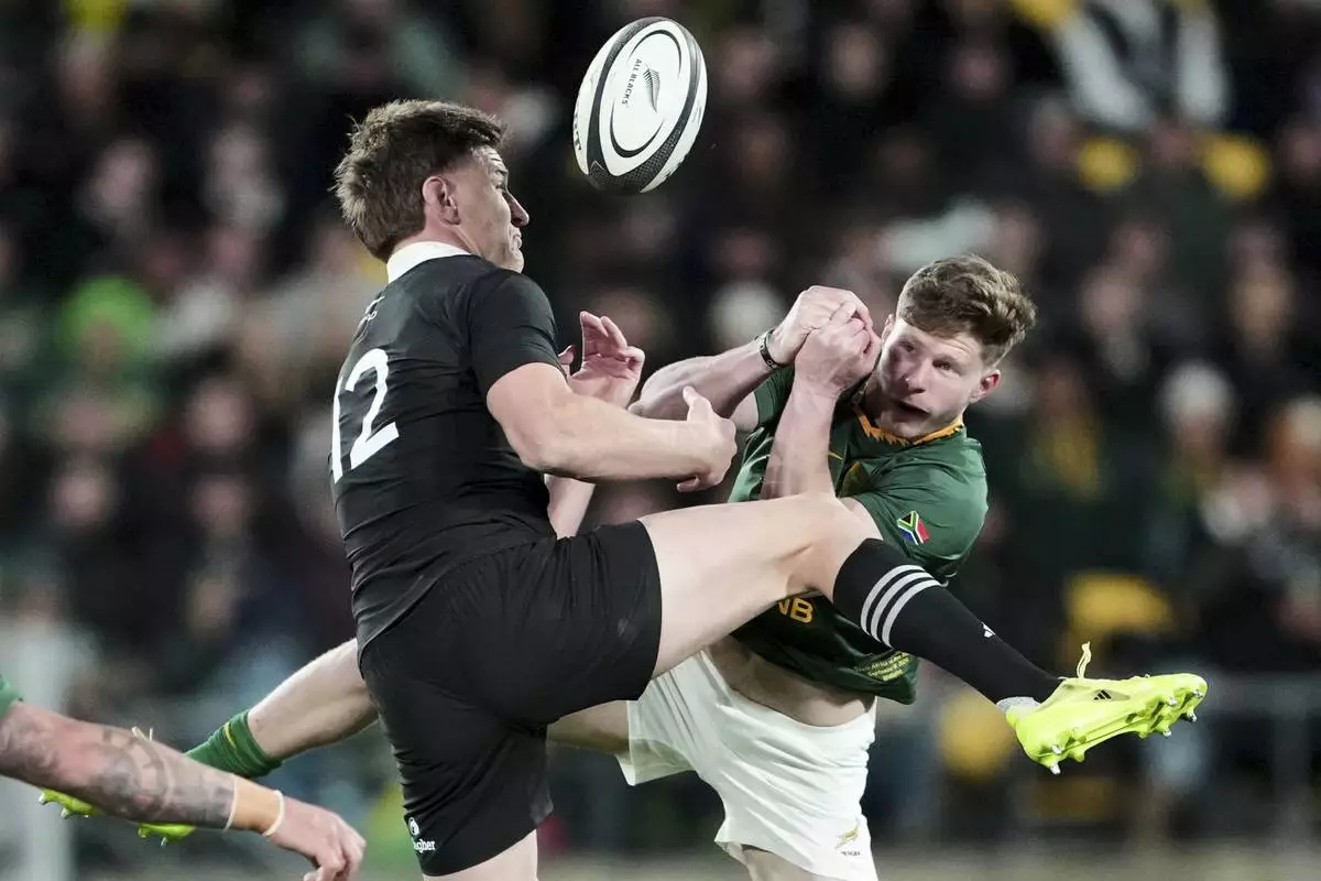 WELLINGTON, New Zealand (AP) — South Africa beat New Zealand 43-10 on Saturday, inflicting the All Blacks' heaviest-ever test loss, retaining the Freedom Cup and re-energizing its Rugby Championship campaign.