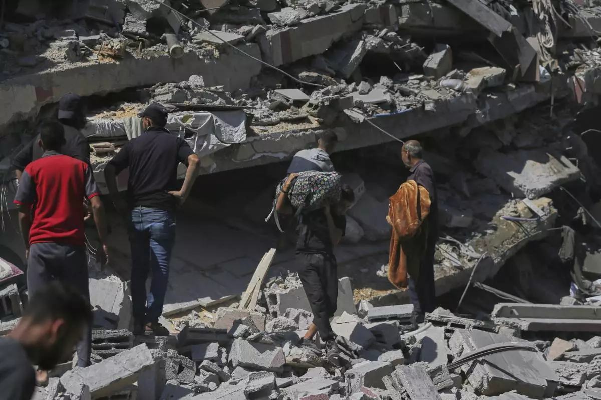 One of the strikes overnight and into early morning Saturday hit a house in the Sheikh Radwan neighborhood, killing a family of 10, including a mother and her three children, said health officials. The Palestinian Football Association said a player for the Al-Helal Sporting Club, Mohammed Ramez Sultan, was killed in the strikes with 14 members of his family. Images showed the strikes hitting followed by plumes of smoke.