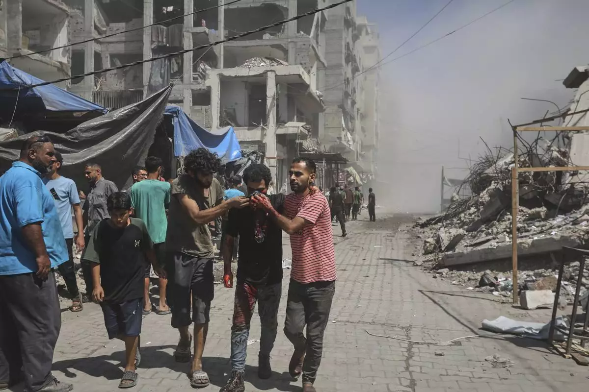DEIR AL-BALAH, Gaza Strip (AP) — A barrage of airstrikes killed at least 32 people across Gaza City as Israel ramps up its offensive there and urges Palestinians to evacuate, medical staff reported Saturday.
