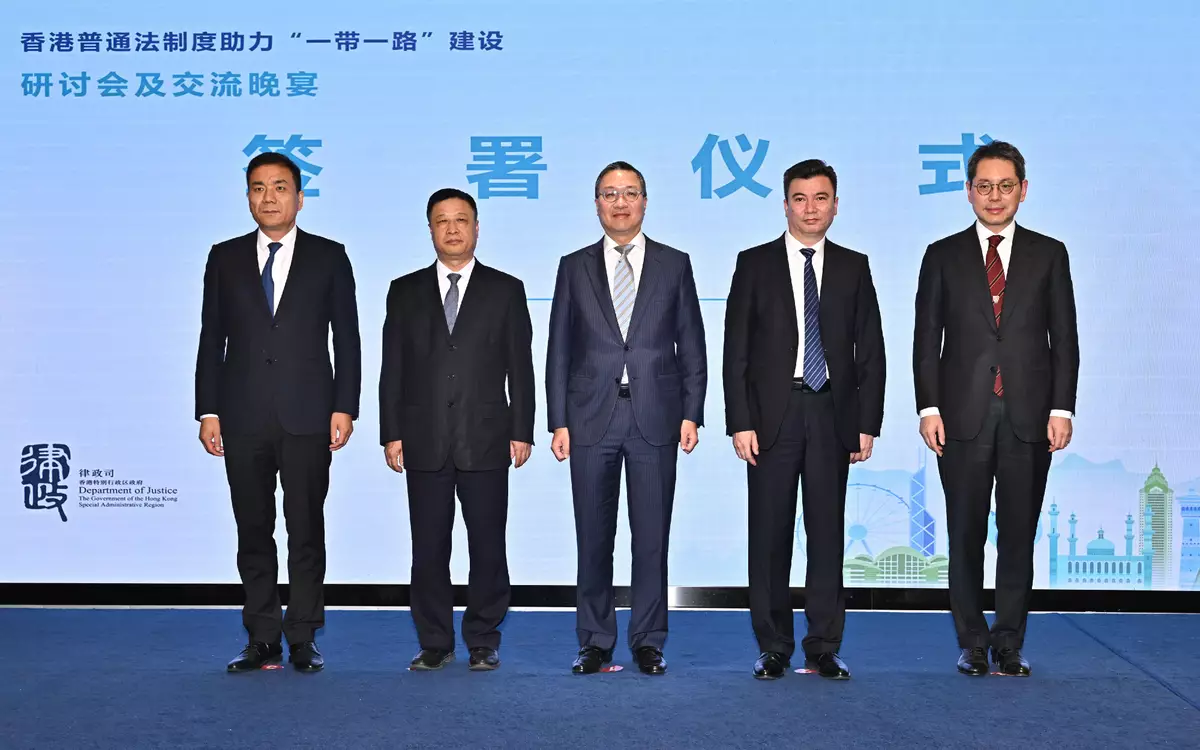 During the seminar, the DoJ and the Department of Justice of the Xinjiang Uyghur Autonomous Region signed a framework agreement for legal service co-operation. Under the agreement, the department of justice of the two places will foster exchanges and business co-operation between Xinjiang and Hong Kong's legal sector. Additionally, the Hong Kong Bar Association signed a memorandum of co-operation with the Xinjiang Lawyers Association to strengthen the collaboration between Xinjiang lawyers and Hong Kong barristers, promoting further professional exchanges and co-operation between the legal professions of Xinjiang and Hong Kong.