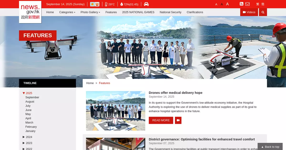 The Secretary for Transport and Logistics, Ms Mable Chan, inspected the pilot project to learn about the latest developments in using drones for medical delivery. Meanwhile, News.gov.hk spoke with the representatives from St John Hospital and the logistics company to learn more about the vast benefits of the project.