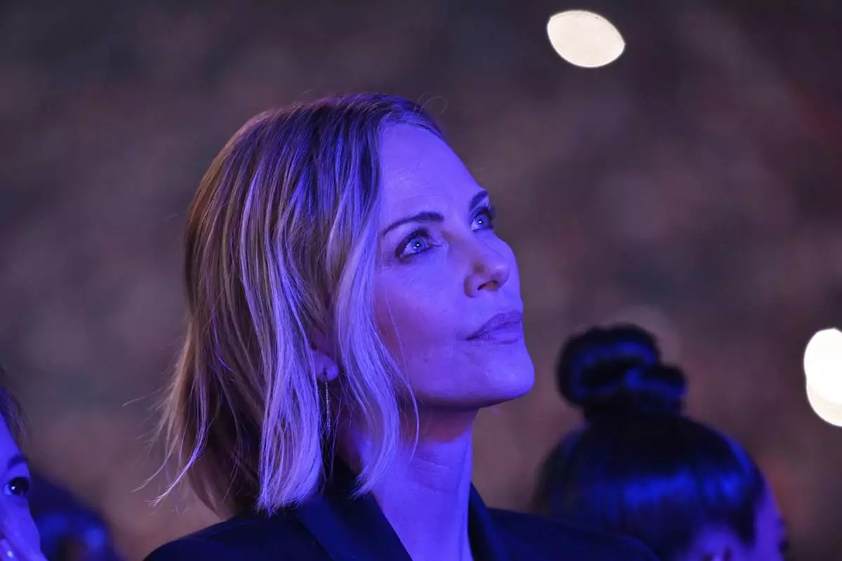 Actress Charlize Theron stands at ringside before an undisputed super middleweight championship boxing match between Canelo Alvarez and Terence Crawford in Las Vegas, Saturday, Sept. 13, 2025. (AP Photo/David Becker)