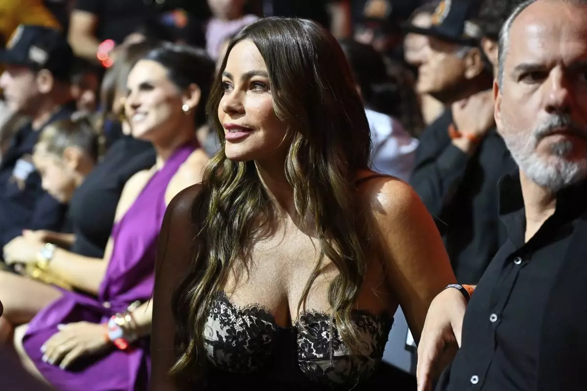 Actress Sofia Vergara sits ringside during a super welterweight boxing match between Callum Walsh and Fernando Vargas Jr. in Las Vegas, Saturday, Sept. 13, 2025. (AP Photo/David Becker)