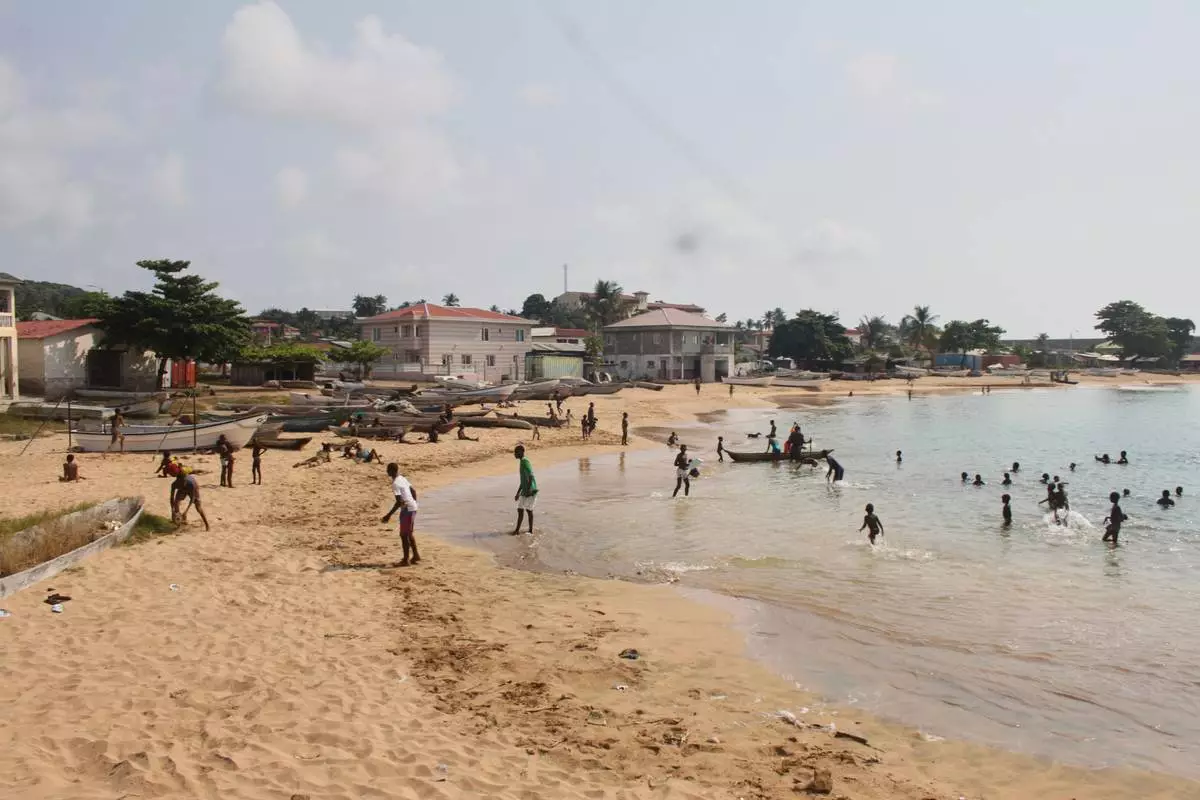 People swim and spend a day at the beach in Annobón Island, Equatorial Guinea, Sunday, June 12, 2022. (AP Photo)