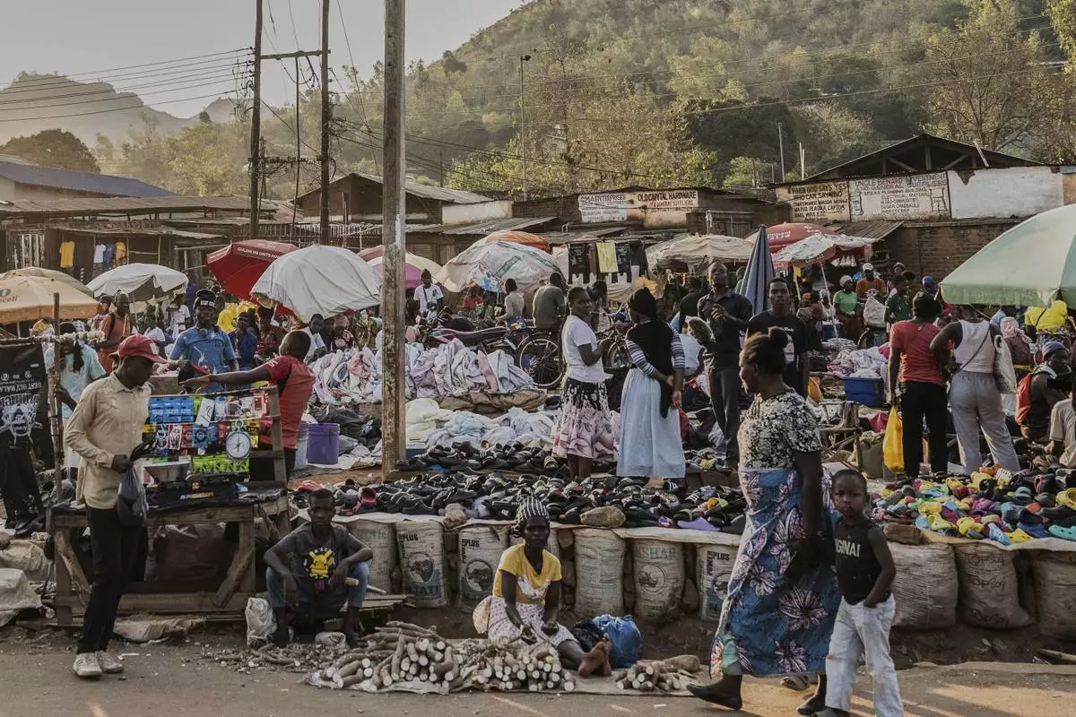 A woman and a child walk past a market in Zomba, Malawi, Wednesday, Sept. 10, 2025. (AP Photo/Thoko Chikondi)