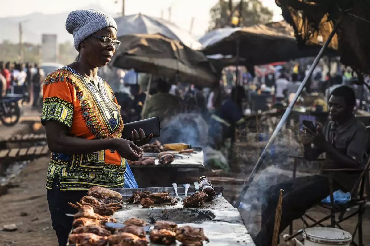 A woman buys food from a street vendor in Zomba, Malawi, Wednesday, Sept. 10, 2025. (AP Photo/Thoko Chikondi)