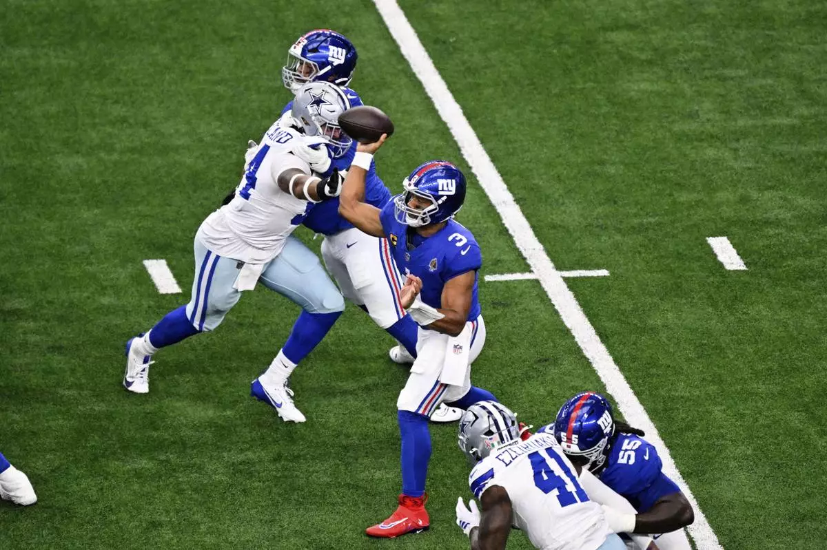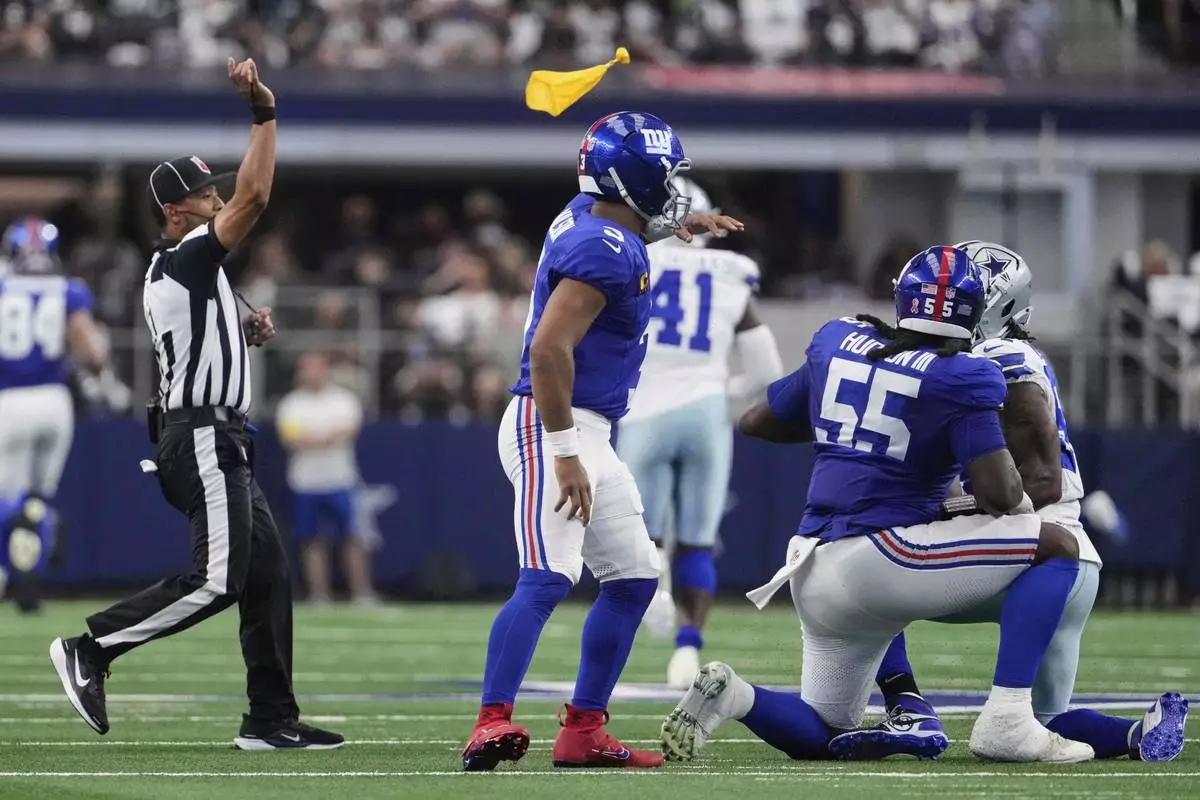 ARLINGTON, Texas (AP) — The penalty flags were flying in a hurry against the New York Giants.