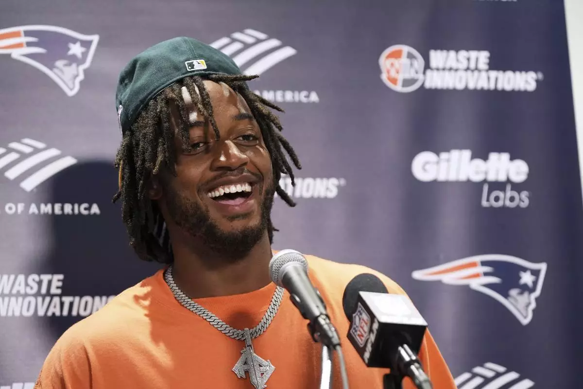 New England Patriots' Antonio Gibson talks after an NFL football game against the Miami Dolphins Sunday, Sept. 14, 2025, in Miami Gardens, Fla. (AP Photo/Lynne Sladky)