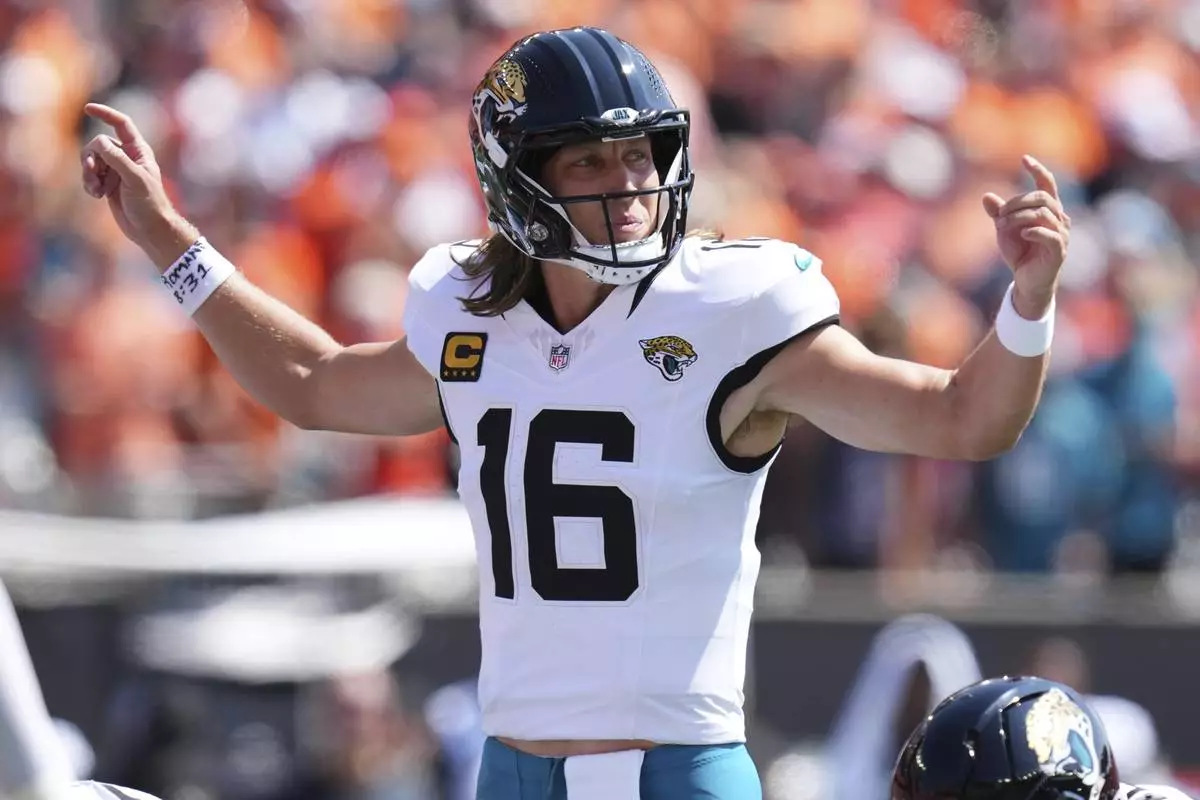 Trevor Lawrence completed 25 of 43 passes for 294 yards with three touchdowns and two interceptions for the Jaguars (1-1).
