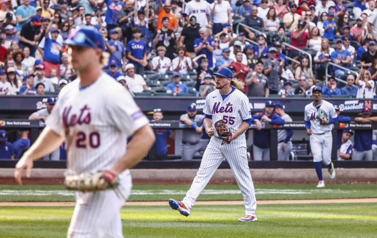 NEW YORK (AP) — Pete Alonso hit a three-run homer off Luis Curvelo, and the New York Mets stopped an eight-game losing streak with a 5-2 win over the Texas Rangers on Sunday.