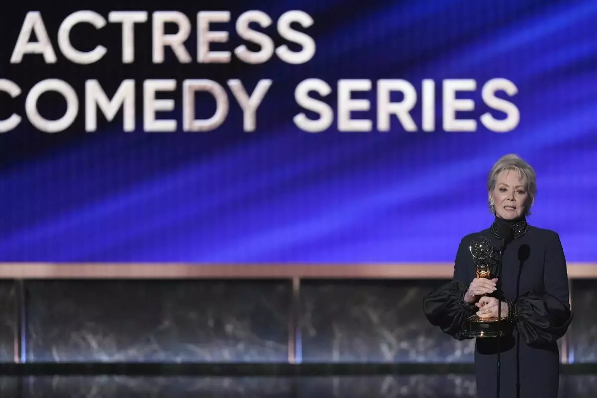 Jean Smart accepts the award for outstanding lead actress in a comedy series for "Hacks" during the 77th Primetime Emmy Awards on Sunday, Sept. 14, 2025, at the Peacock Theater in Los Angeles. (AP Photo/Chris Pizzello)