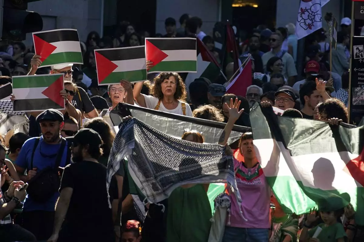 MADRID (AP) — Spanish Prime Minister Pedro Sánchez on Monday called for Israel to be banned from sports events after pro-Palestinian activists disrupted the end of the Spanish Vuelta cycling race in chaotic scenes in Madrid.