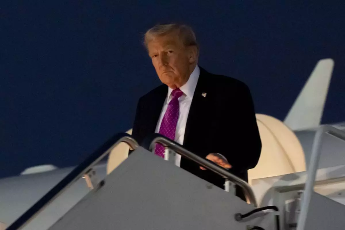 President Donald Trump arrives on Air Force One, Sunday, Sept. 14, 2025, at Joint Base Andrews, Md. (AP Photo/Alex Brandon)