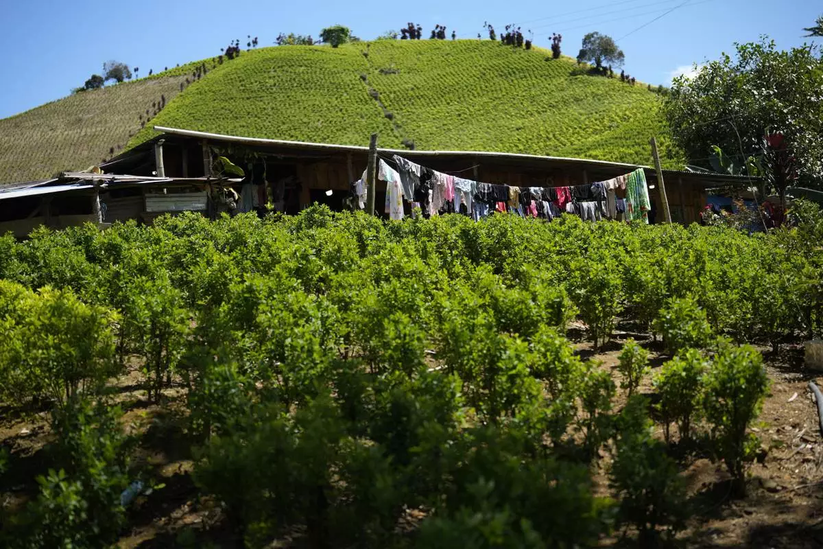 FILE - Laundry dries on a clothesline in the middle of a coca field on a hillside of the Micay Canyon, southwestern Colombia, Aug. 13, 2024. (AP Photo/Fernando Vergara, File)