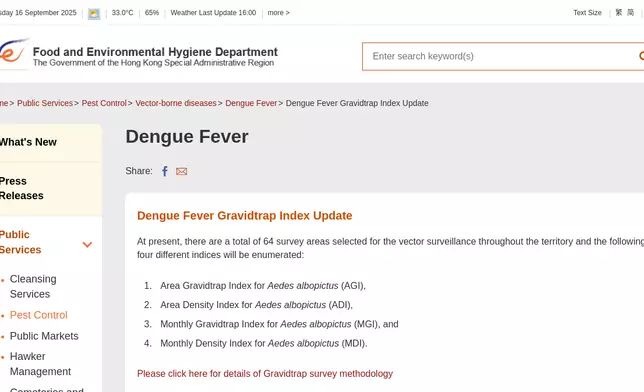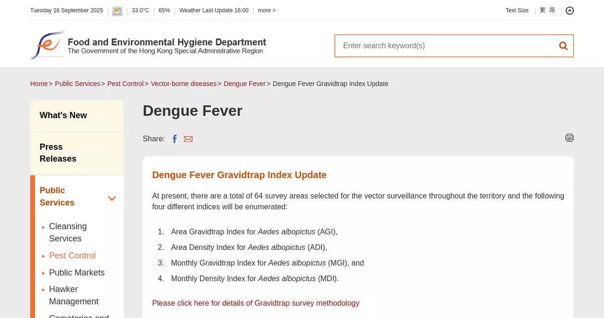 FEHD releases second batch of gravidtrap indexes for Aedes albopictus in September